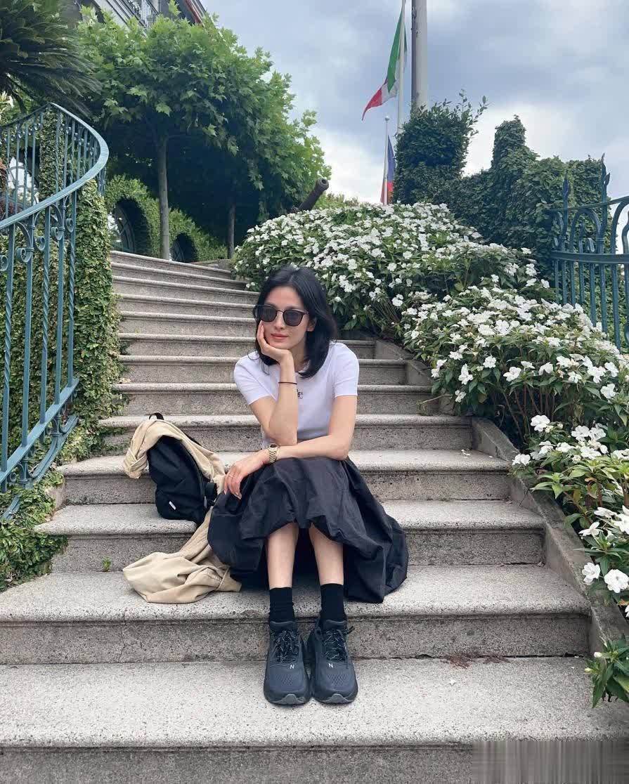 上半身穿了一件T恤,版型略带修身,将肩颈和手臂线条烘托得十分利落。面料柔滑透气,衣着舒适且不挑东谈主。玄色高腰半身裙长度刚好到膝盖下方,自带慵懒优雅的氛围。这条裙子与修身T恤搭配,松紧对比恰到平正,视觉上不会显得肥美。
