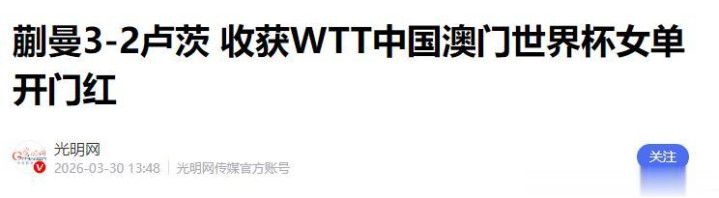 光明网——蒯曼3-2卢茨 得益WTT中国澳门宇宙杯女单开门红