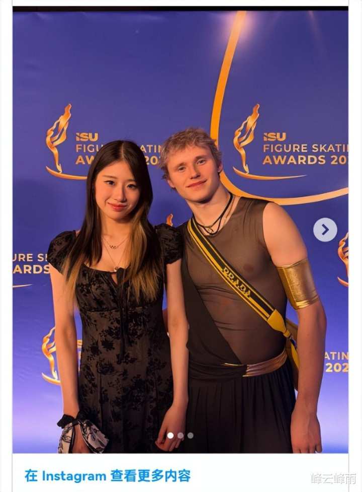 韩国花滑女将李海仁晒出的与马里宁的"亲密双东谈主照"