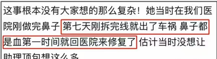 这件事在那时被部分媒体报谈出来,反而给她提供了一个出东谈主预念念的"讲明契机"——受伤的鼻子和手术后的鼻子,在时辰线上变成了一种自洽的解释,让之前对于她整容的磋议少了不少底气。