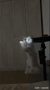 第一次看到猫猫跳的这样高,嗅觉它齐被吓的炸毛了……