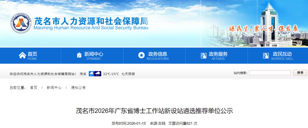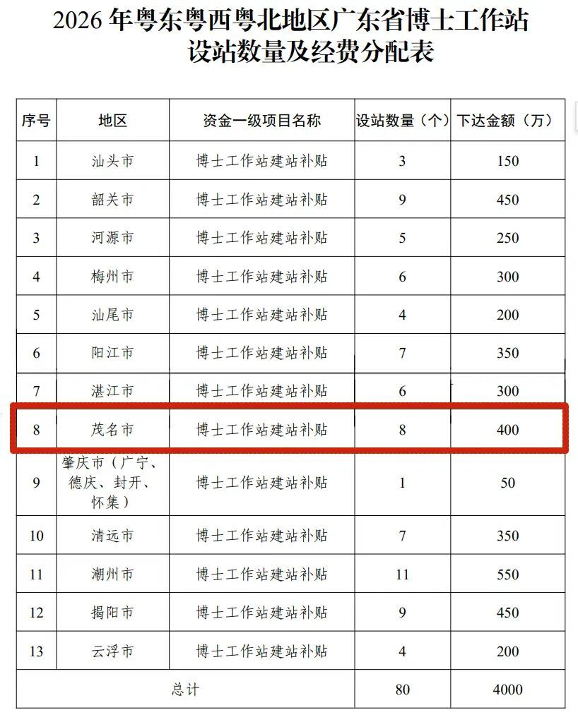 茂名市2026年广东省博士责任站新设站单元
