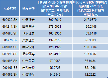 盈利方面,2025年净利润干涉“百亿俱乐部”的券商数目,从2024年的5家增至6家。