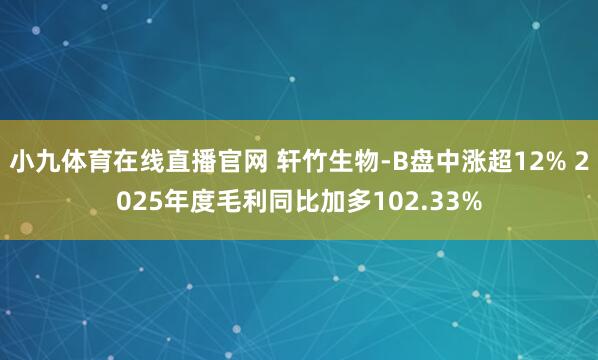 热门栏目 自选股 数据中心 行情中心 资金流向 模拟往来 客户端 轩竹生物-B(02575)早盘一度涨超12%,适度发稿,股价高涨7.14%,现报32.40港元,成交额5494.92万港元。 近日,轩竹生物-B发布适度2025年12月31日止年度功绩,该集团获取收入5177.2万元,同比加多72.03%;毛利3336.9万元,同比加多102.33%;母公司领有东说念主应占亏本2.46亿元,同比收窄55.88%;每股亏本0.53元。 叙述期内,本集团采用无邪且有针对性的交易策略,以最大限度地发达...