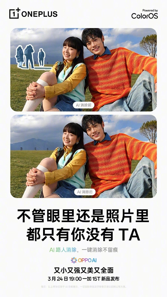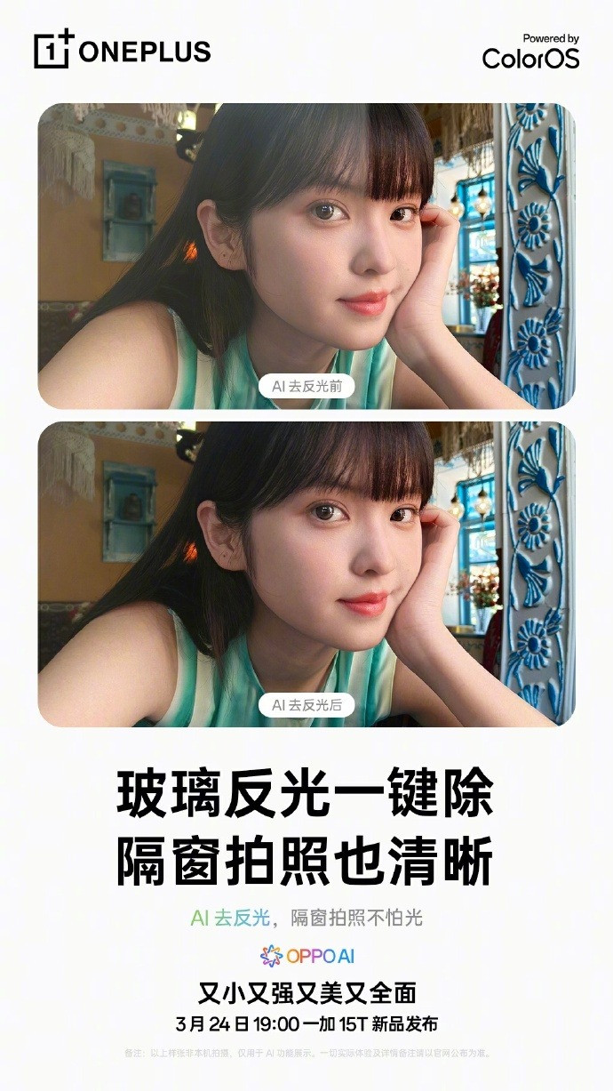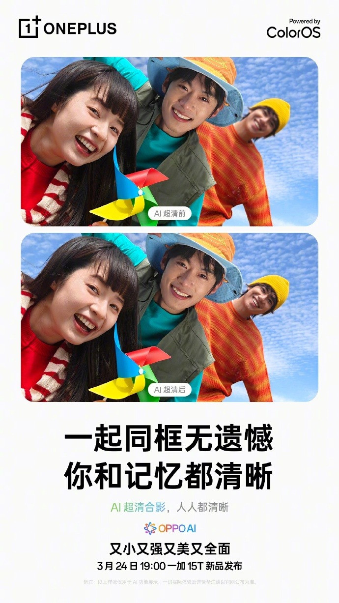 3月23日音问,一加官方连续为一加15T发布会预热,最新走漏了新机在系统与AI影像方面的升级信息。据悉,一加15T将搭载全新升级的ColorOS 16,并引入多项AI影像功能,进一步强化拍照体验。