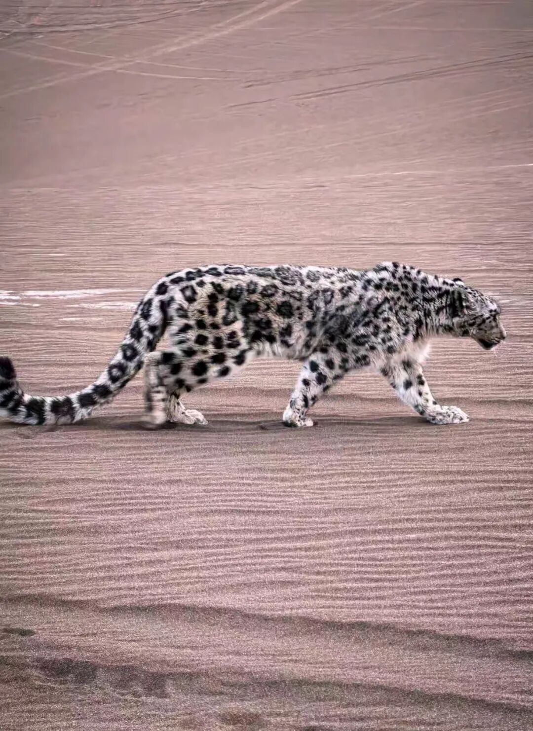 当日14时许,鄯善县公安局环境资源和食物药品行恶窥探大队接到环球要紧报警,称在库木塔格沙漠水月镜花景点向沙漠纵深30公里处发现一只雪豹,疑似因误入沙漠堕入窘境,急需援助。接警后,警方立即开动济急惩办预案,由环食药侦大队牵头,赶快联动辟展派出所、特警大队警力构成支持专班,第一时分前去现场开展支持。