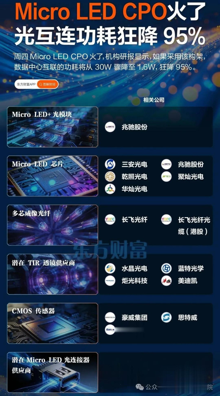 Micro LED CPO吝惜机会:2026年3月以来,Micro LED四肢CPO光源的技巧阶梯逐步受到产业心疼,背后是产业端关联决策的冉冉选拔与实施。对比来看,激光光源有其自身上风,但Micro LED在能耗方面具备无可比较的中枢上风,适用于柜内、短距柜间等10米以内的传输场景,落地节拍仍需陆续追踪。当今以微软为代表的行业进步者已开展关联技巧探索,能耗与沉着性在传输经由中的考量权重较高