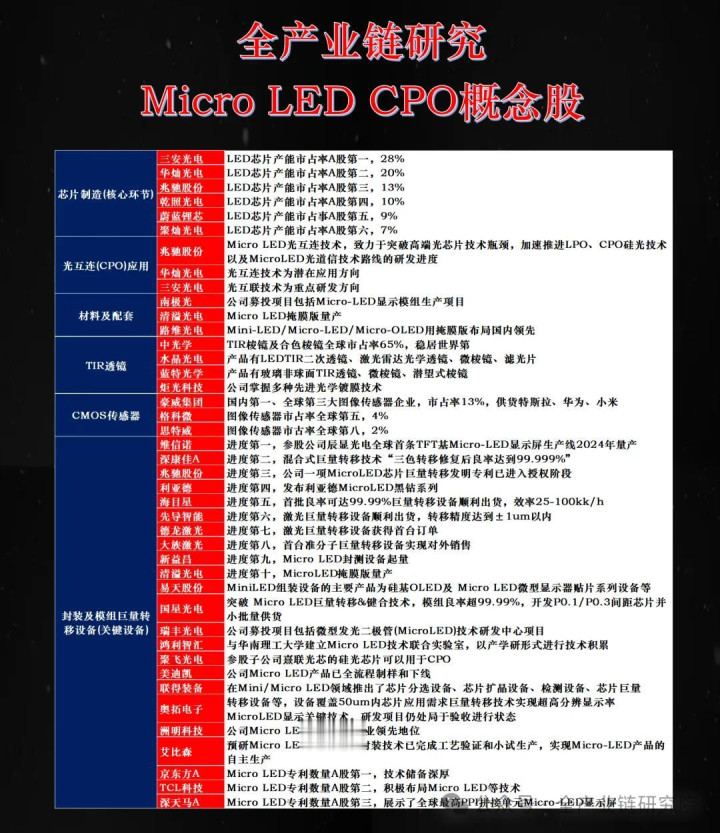 ·中枢技巧难点:Micro LED技巧对芯片尺寸有极高条目,功能性运用场景中所需的Micro LED芯片尺寸需达到10微米傍边。面前旧例量产的LED芯片尺寸广宽为三四十、五十微米,Micro LED的尺寸条目远高于现存旧例居品,重复芯片自己精密度条目较高,对光源极小尺寸的条目进一步升迁,这对LED企业的芯片坐褥智商是较大挑战。由于极小尺寸芯片的坐褥工艺难度较高,当今仅行业头部LED厂商具备该类极小尺寸芯片的量产智商。