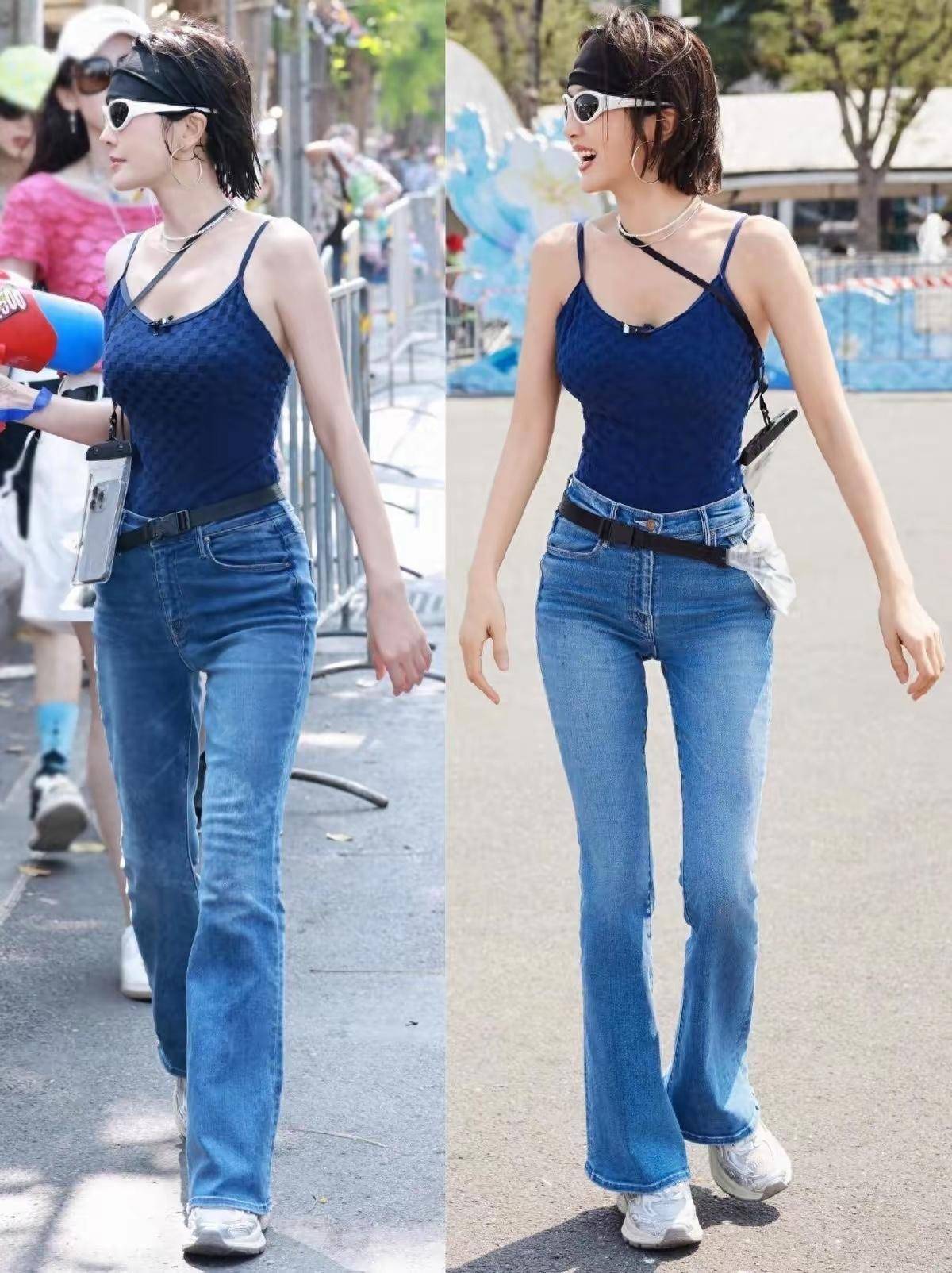 秦岚衣服藏蓝色细肩带吊带,低调千里稳的色彩衬得肤色更透亮,带点肌理感的面料贴合体态却不紧绷,当然勾画出舒展的肩颈线条与明晰腰腹,锁骨利落、肩线告成,莫得一点弥散赘肉,清醒又透着恰到公正的良好感,十足不会显得败露轻浮。下身搭配高腰微喇牛仔裤,精确举高腰线的策划把体格比例分割得恰到公正,裤身顺着臀腿线条当然包裹,贴合腿部弧线又不勒肉,小九体育腰间系着玄色细腰带,腿看起来更长了