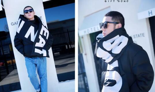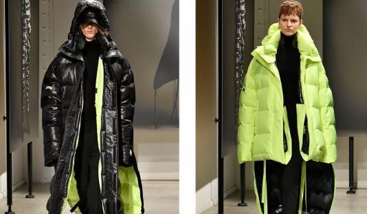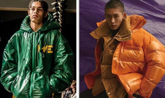 绿色一向是很有鲜生气的表情,搭配上亮面的羽绒服材质,也很有几分前锋打算感。