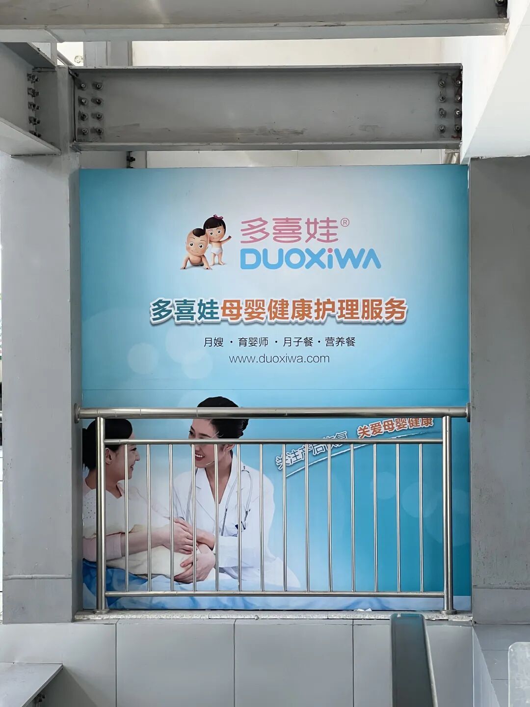 此外,奥一新闻记者精雅到,在福强院区产科地点楼层的门诊与化验室之间楼梯口处,设有一处名为“多喜娃”的外部机构宣传摊位。