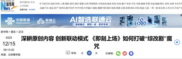 《深耕原创本体 改进联动口头 《即刻上场》如何冲突“综改剧”魔咒》,新华网