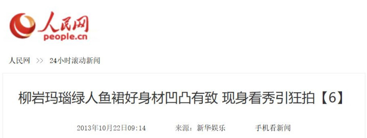 《柳岩玛瑙绿东谈主鱼裙好身体荆棘有致 现身看秀引狂拍》,东谈主民网