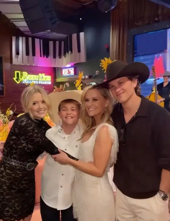 这场豪华派对,更像是一场温馨的家庭狂欢,瑞茜的三个孩子完全到场,给姆妈庆生,画面超暖心。大女儿阿瓦穿了颓唐玄色蕾丝长袖连衣短裙,腰间系着细巧皮带,和姆妈的白色投诚酿成昭彰对比,又酷又好意思;大女儿迪肯更过劲,班师化身现场DJ,在台上打碟,节拍拉满,把全场仇怨带动得超嗨。