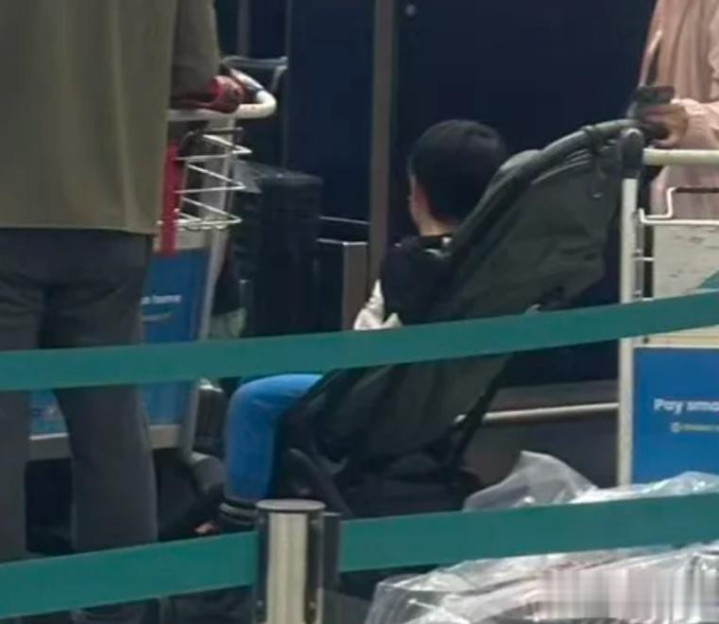 等了好俄顷,18岁的Lucas终于推着行李走出到达口。