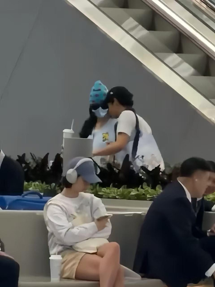 3月26日,在香港海外机场被网友拍到了温馨的画面。