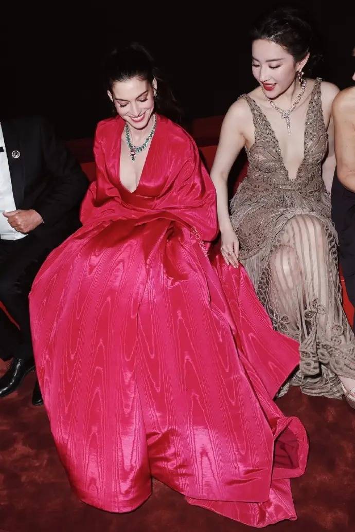 安妮・海瑟薇身着的明艳正红高定长裙,将西方明艳好意思学与意式糜掷极致碰撞。